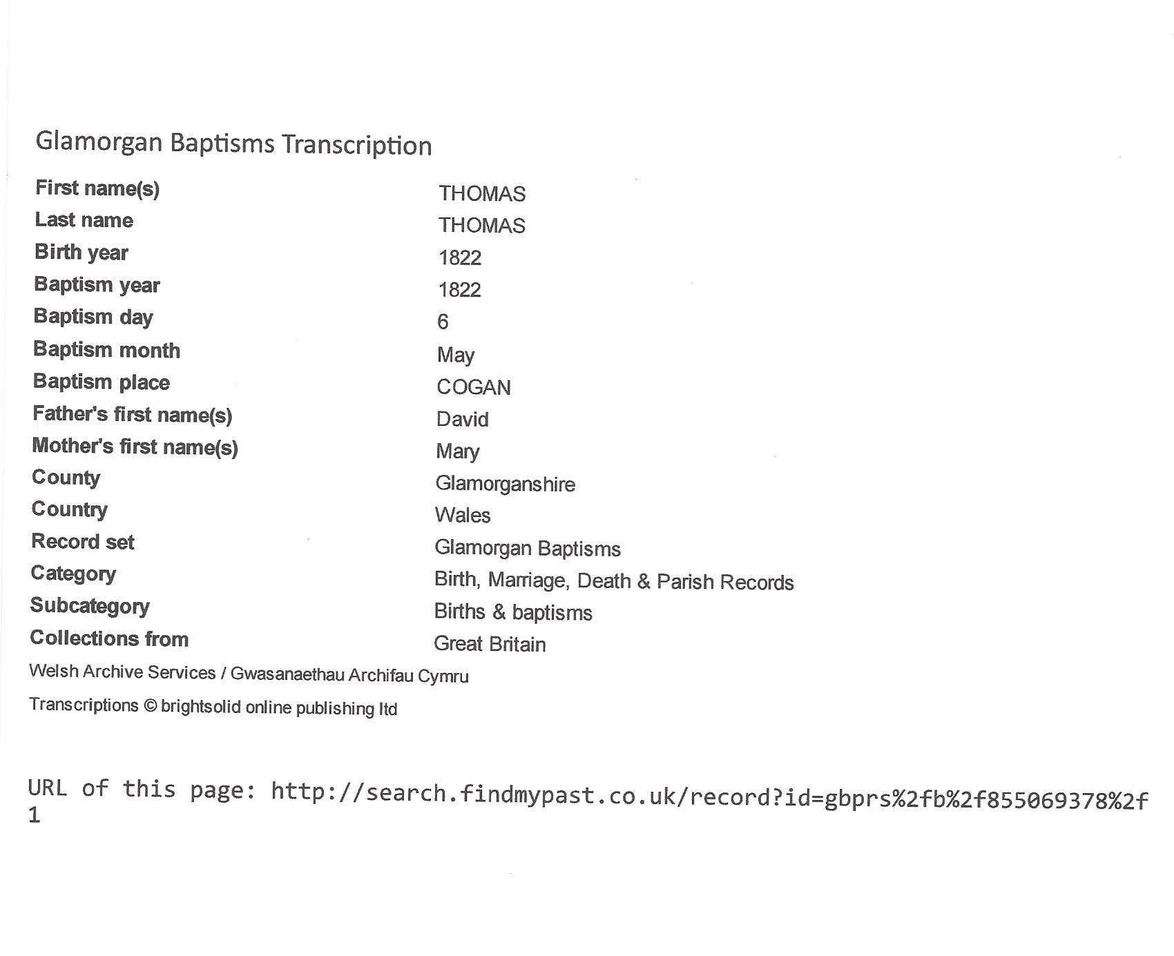 Birth place: Glamorganshire, Wales